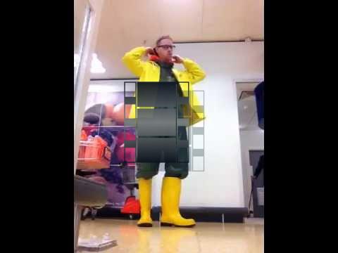 removing 3 tightly tied hoods from the rainsuits im wearing in front of shoppers at sainsburys.
